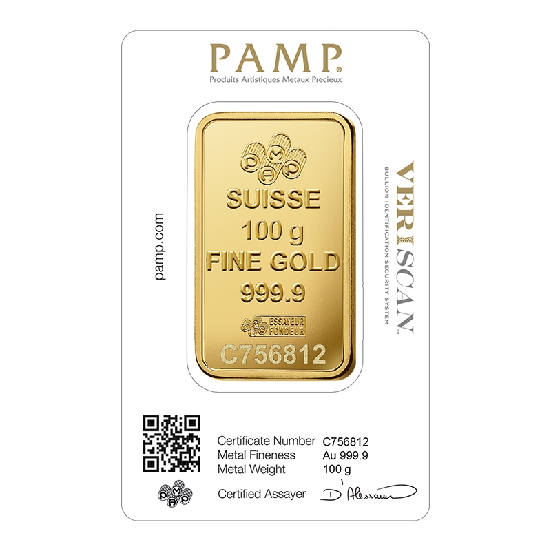 100 Gram PAMP Swiss Gold Bullion Bar